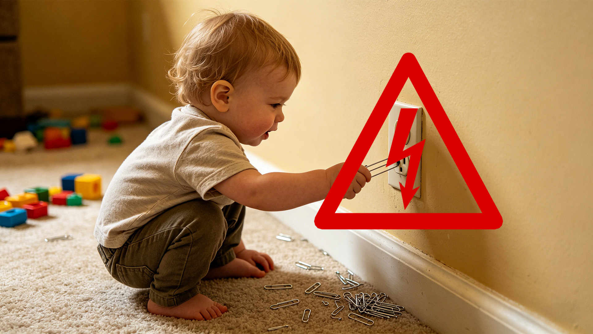 1. 異物插入導致觸電: 幼兒天生好奇心強,經常、容易拿金屬物品(如髮夾、迴紋針)插入插座孔洞 ; 而導致幼兒觸電意外發生。