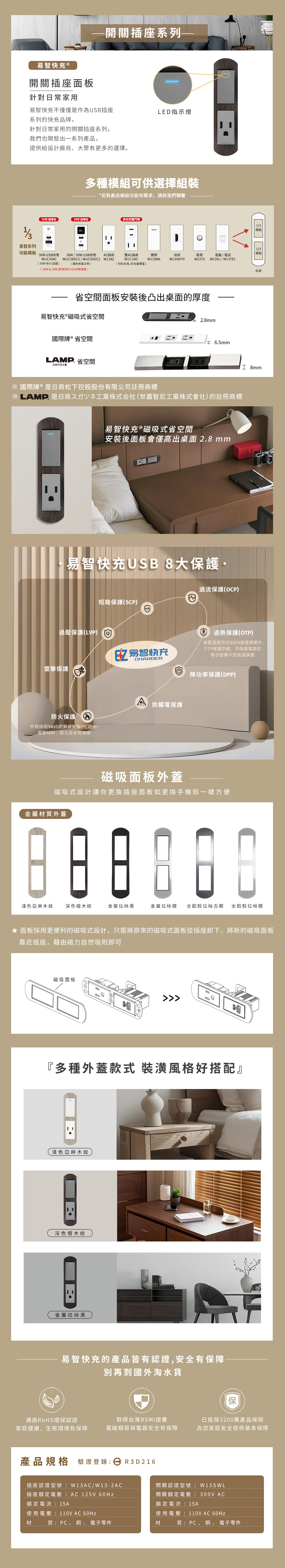 簡約美觀:現代化磁吸式面板設計,無痛變換面板,適合各種裝修風格